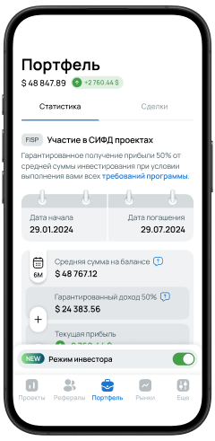 Инвестиции в СИФД рассчитаны на 6 месяцев. За первые 6 месяцев торговли гарантированная прибыль составляет минимум 50% от вложенных средств. По истечении первых 6 месяцев программу можно продлить на аналогичный период, и на вторые 6 месяцев торговли гарантия прибыли будет составлять 15% от вложенных средств.